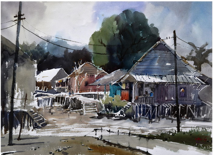 受邀雪州丹绒士拔画家谢惠载的作品:
